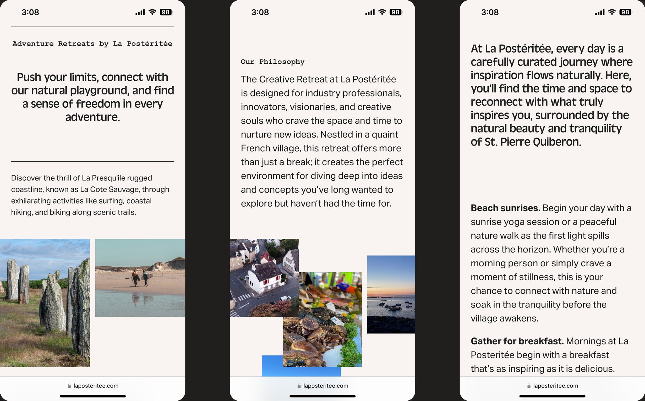 La Postéritée is a retreat center designed to help others embark on a journey of self-discovery. With a focus on art, travel, and cultural exploration, visitors are offered a thoughtful, personalized experience tailored to their creative or experiential goals. Tuo contributed to the effort by crafting an identity system and website that conveyed both the unique concept and the distinctive setting to audiences seeking a transformative experience.